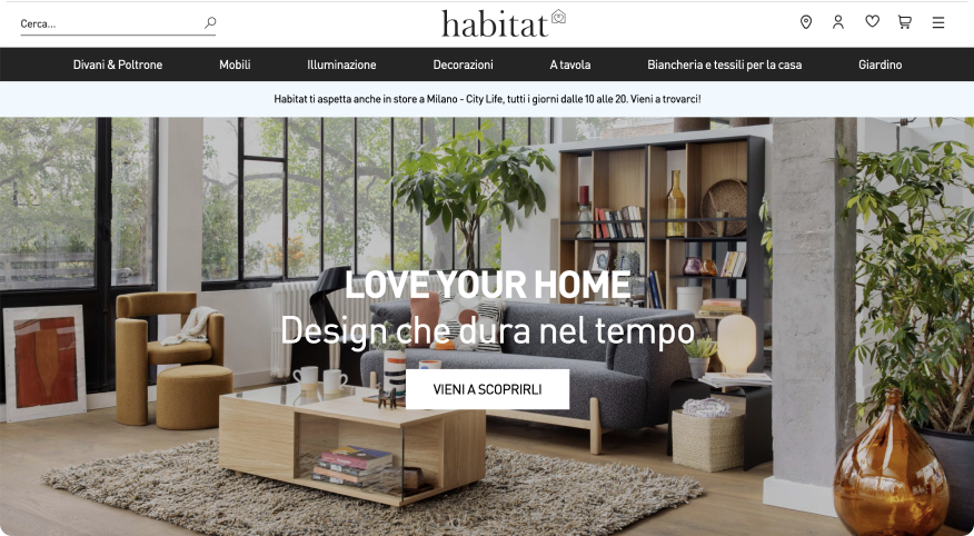 Habitat è un brand di arredamento internazionale, che crea tendenze e ambienti confortevoli, con la voglia di dare un’impronta di modernità al mondo dell’arredo e del design d’interni. Ac Consulting si è occupata del lancio del progetto sul mercato Italia, con una strategia quinquennale che ha ci ha visti impegnati in tutte le fasi di costruzione e promozione del brand online.